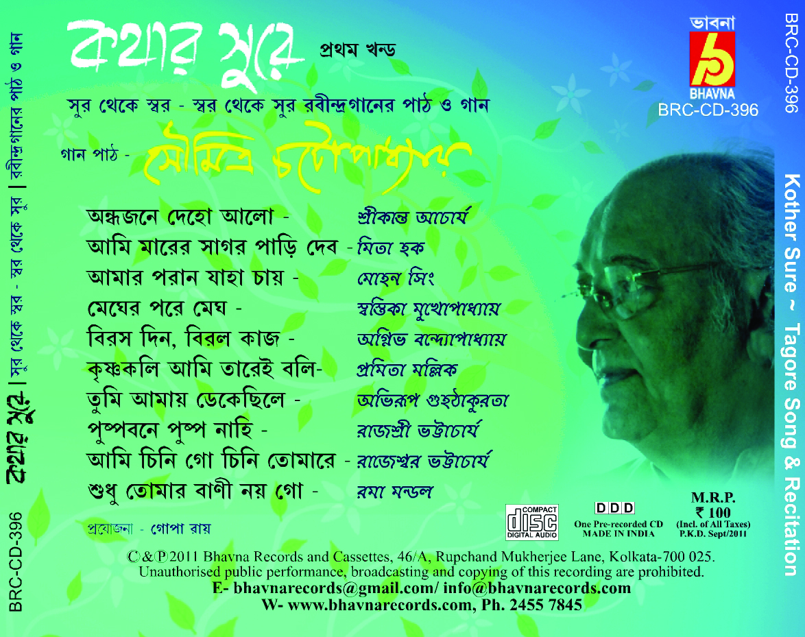 GAAN – SRIKANTA ACHARYA, MITA HAQ, MOHAN SINGH, SWASTIKA MUKHOPADHYAY, AGNAIBHA BANDYOPADHYAY, PROMITA MALLICK, ABHIRUP GUHATAKURTA, RAJASHREE BHATTACHARYA, RAJESHAWAR BHATTACHARYA, ROMA MONDAL